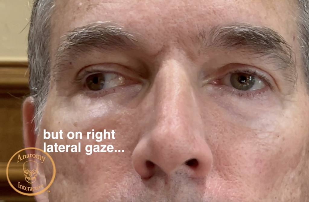 Internucler opthalmoplegia is caused by demyelenation of the medial longitudinal fasciculus carrying the stimulus to the oculomotor nucleus on one side to contract the medial rectus in unison with the opposite lateral rectus. Hence, the eye on the side of the lesion fails to look medially on lateral gaze. There is another H-test that covers this once you've solved the current case. Click the return link to see how this case differs from the above image.